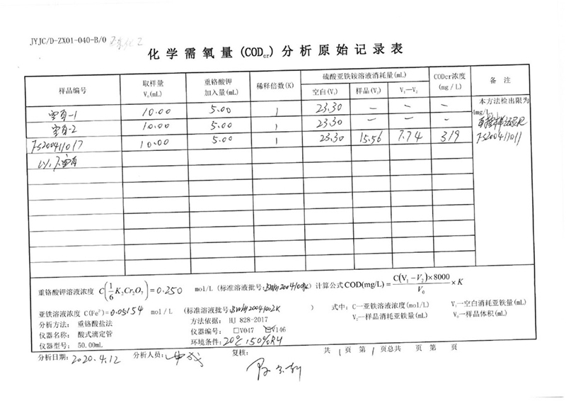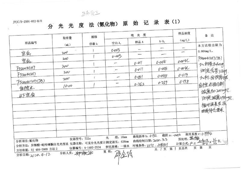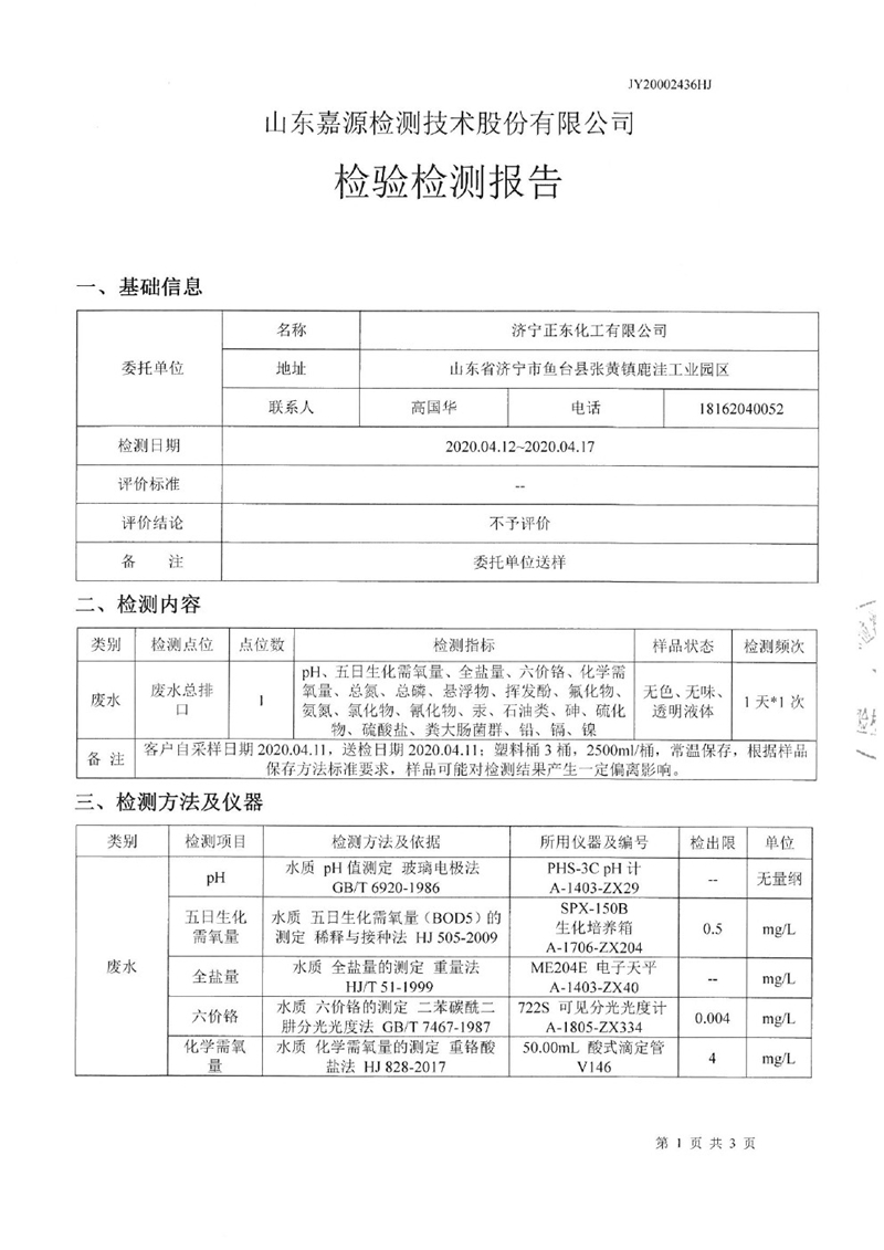 正東化工2020年(nián)4月廢水自(zì)行(xíng)監測